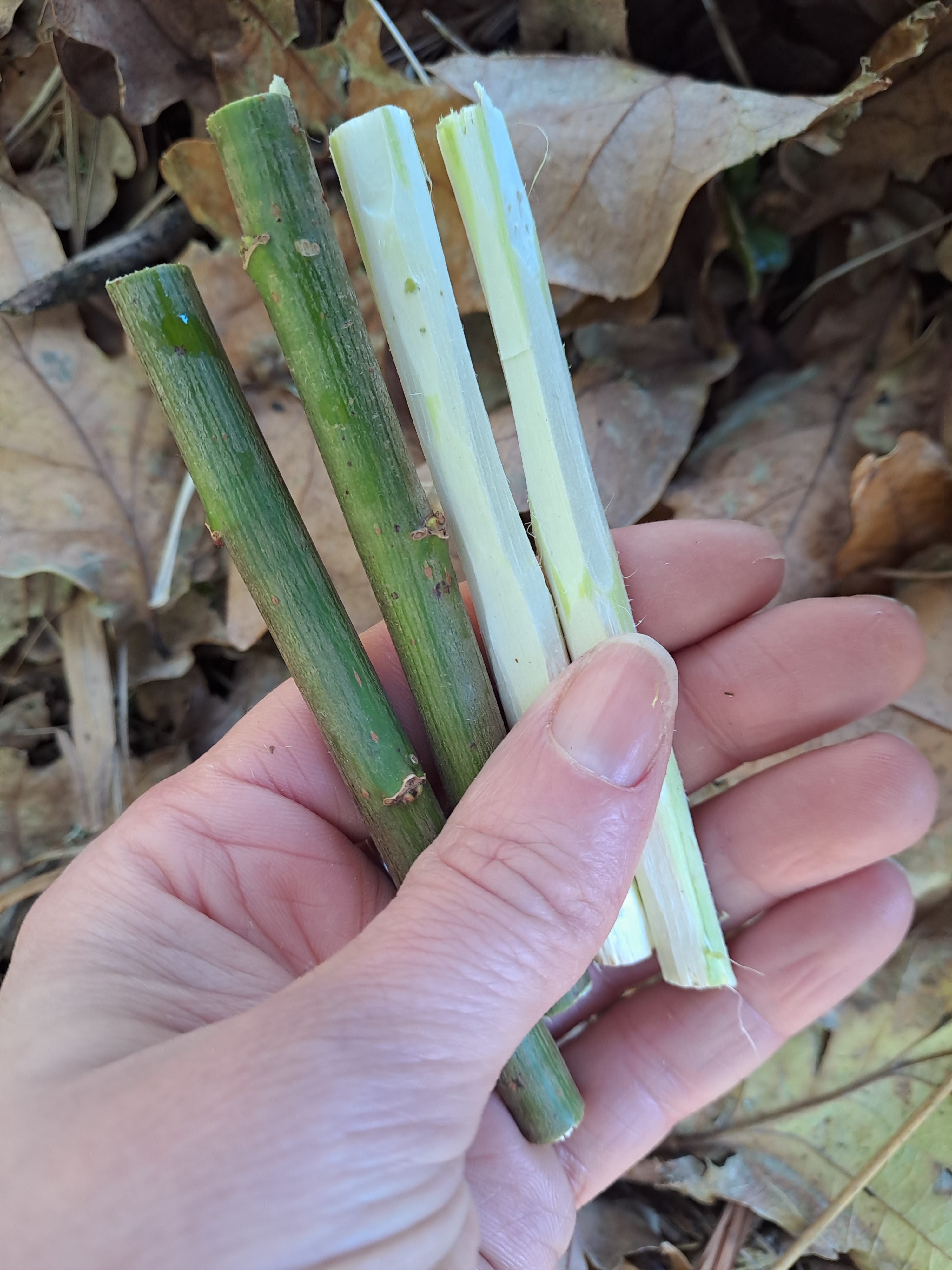We made our charcoal from freshly-cut willow (Salix spp.) so I refer to willow throughout this post, but you could experiment with different types of wood to see which you prefer. The wood from different species of trees has slightly different internal structures, which will produce different textures of charcoal and different shades of black when you draw with them.