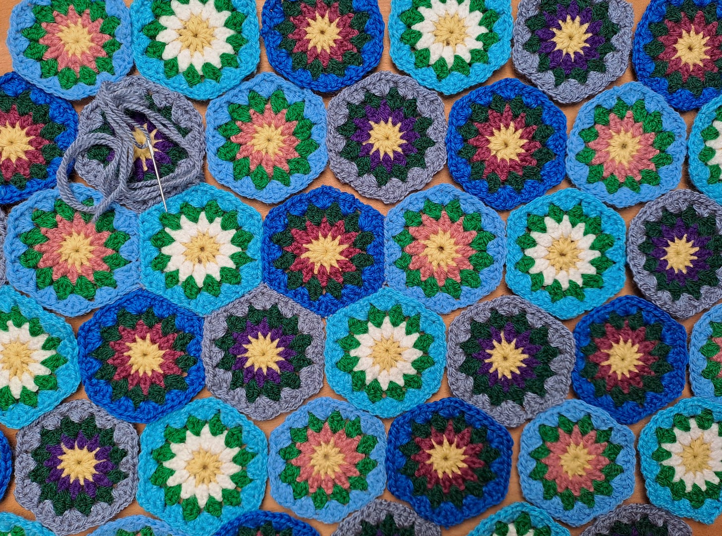 Lately I have got back into crocheting, after a break of a few years. I started off by making a couple of round mats to go under my demijohns of wine so they didn’t scratch the surface of the dresser they sit on, and am now in the process of making many, MANY hexagons which will eventually become a blanket. I think I’ve done about 70 so far, and am really not looking forward to sewing them all together! All the yarn I’m using is stuff that I already had lying around so while this project is certainly taking time, it’s not costing me any money at all. And it’s better than spending my time doom-scrolling, right?!