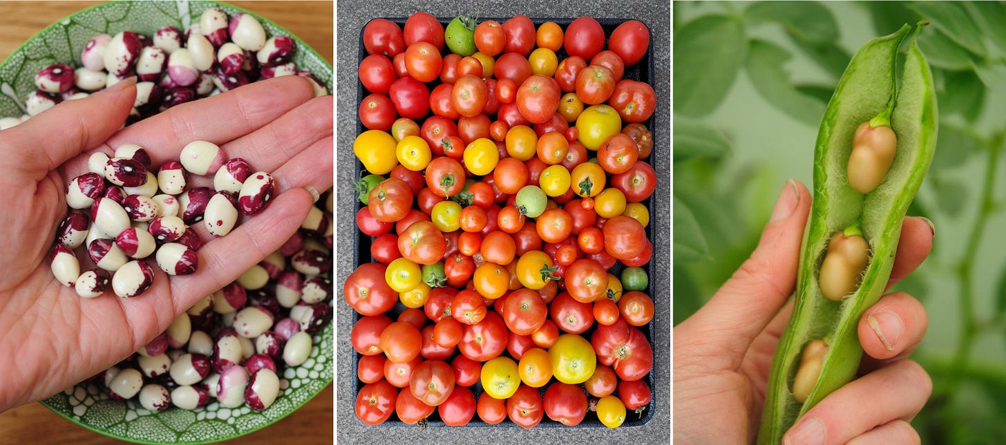 Over the years we have also swapped our oysters with local fishermen for crabs and lobsters, and I do an annual oyster swap with some people I met through Instagram. They are self-sufficient in fruit and vegetables (another dream of mine!) so every year I send them a box of oysters, and they send me a parcel of seeds and cuttings. So far I have received, amongst other things, Majorcan Pea Beans, Karmazyn broad beans, an unknown variety of very early rhubarb, cuttings of a couple of varieties of perennial kale, Bush Baby marrow and Crystal Lemon cucumber seeds, yacon crowns, honeyberry cuttings, and some varieties of tomato that *actually* grow well on the west coast of Scotland!