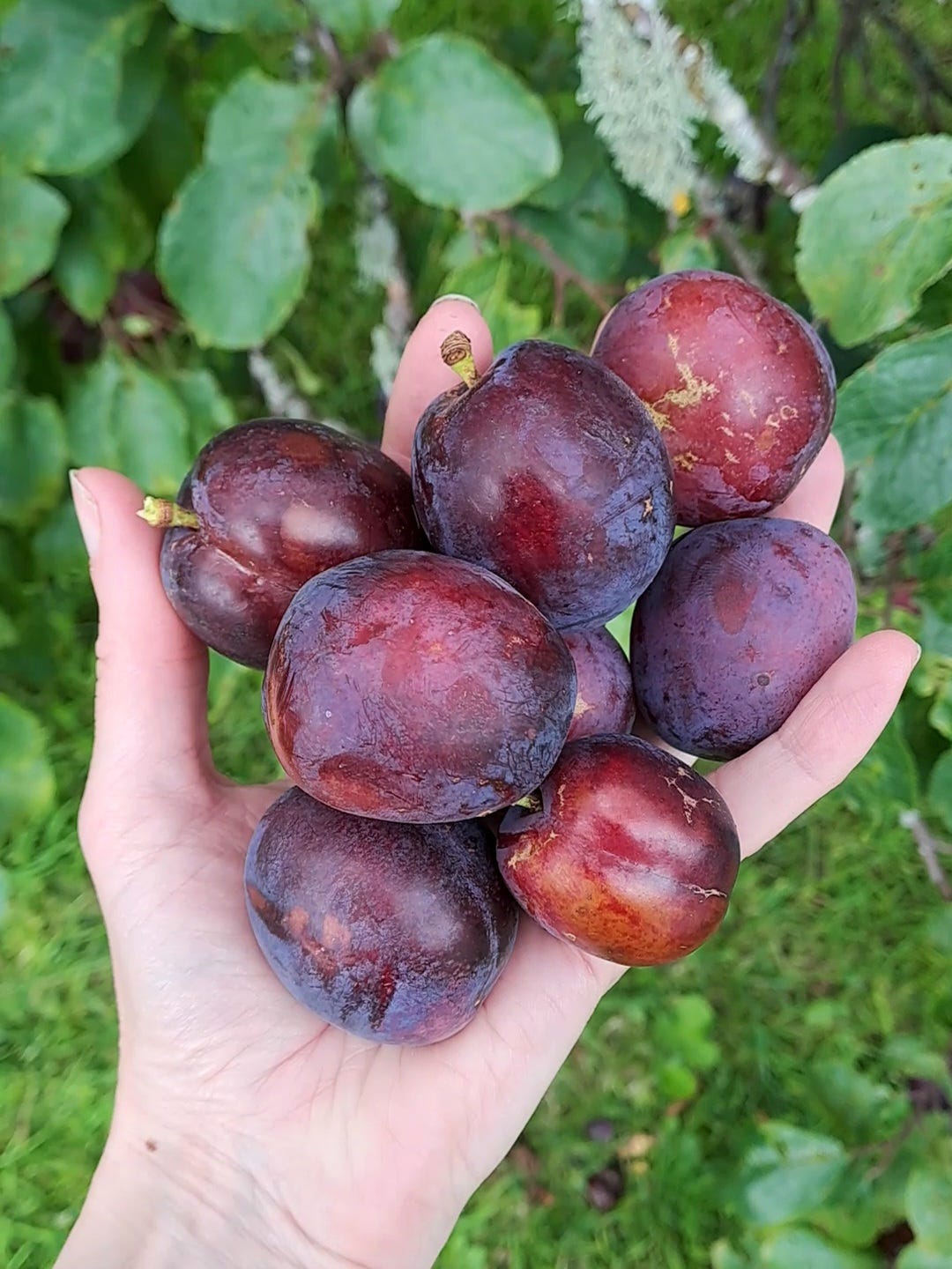 Wonderful harvest. I love plums. Crumbles, pies, dehydrated as prunes, fresh, everything. My plum tree was infested with Black Knot, a fungus we have here that affects anything in the Prunus genus. I've removed the spots of fungus, but I don't know if the tree will make it. 😬 If it doesn't I'm going to have to do some research into what to plant in its place.