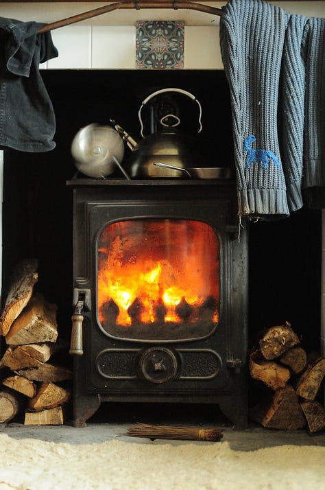 Drying a load of laundry, or a damp sock from a leaking welly. I don’t have a tumble dryer so in winter it can sometimes be hard to get near the stove for all the clothes horses laden with damp washing!