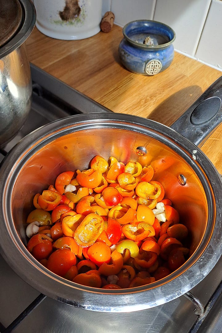 I like tomatoes. There’s something so special about biting into the first one of the summer, sun-warmed and picked straight from the plant. Unfortunately, the west coast of Scotland isn’t really the ideal climate for growing them: we’re not known for our hot sunny summers! There are some foods I am self-sufficient in – garlic, kale, and plums, to name a few – but tomatoes definitely do not fall into that category. I’ve never managed to grow enough to preserve all we need for the rest of the year, so tins of tomatoes are a staple in our house during the out-of-season months. Tipping a can of them into a curry or stew, or into a pot with some chopped veg to have on top of pasta, is just so easy to do! I am, however, always trying to reduce my dependency on purchased food, and be just a bit more self-sufficient. (There’s a whole other conversation to be had about how absolute self-sufficiency probably isn’t even possible, and isn’t actually my ultimate goal, but let’s leave that for another day!)
